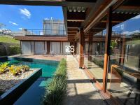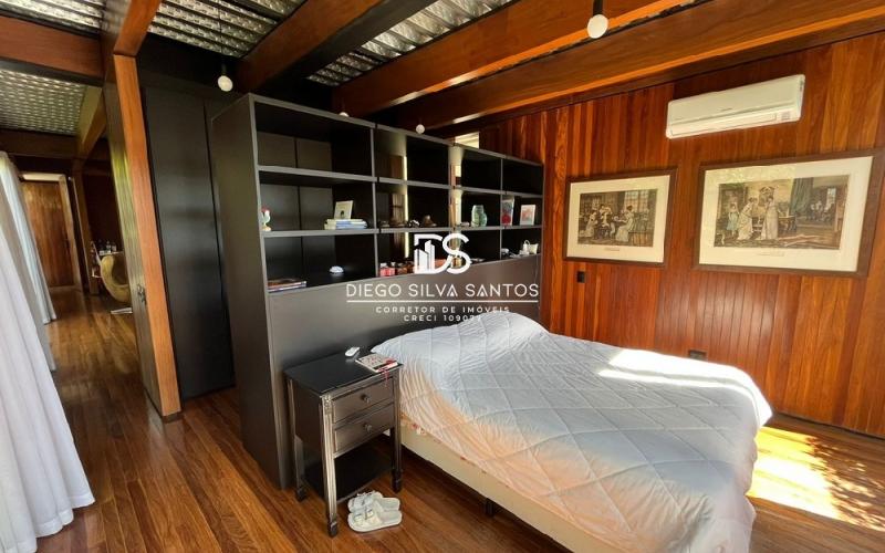entrada independente. Todos os cômodos possuem ar condicionado instalado. Jardim com lindo paisagismo, muito bem cuidado com diversas plantas. Quintal todo gramado, sistema com gotejamento e aspersor computadorizado. Garagem para 06 autos sendo 02 cobertos, Canil fechado. Casa toda construída com vigas de aço e revestida em madeira cumaru. Esta casa já participou de premiação pela revista casa e Jardim.
