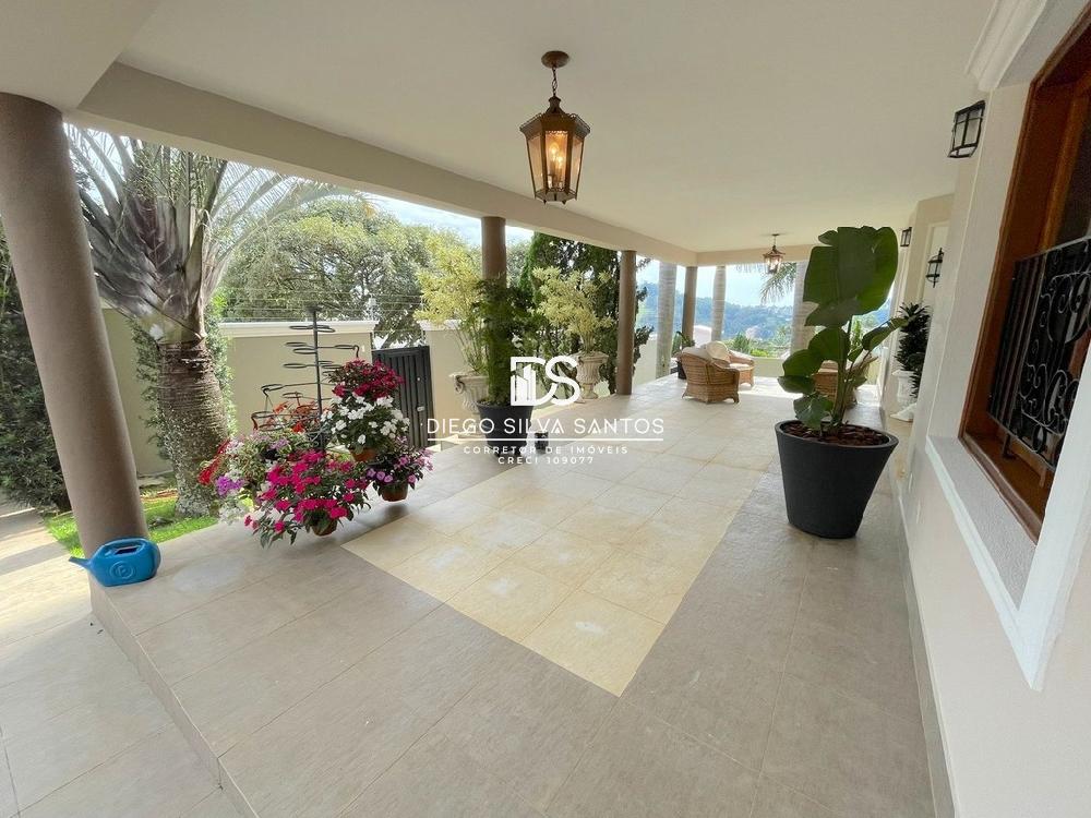 Casa na Estancia Suiça com 4 suites com closet e sacada, com suite master, sala de estar com barzinho, sala de jantar, sala de TV, cozinha planejada com moderna ilha, espaçosa area gourmet com churrsqueira, balcão, fogão a lenha, WC masculino, WC feminino, piscina com aquecimento solar e hidromassagem, cerca de segurança e lindo deck, e contando com mais um salão no pavimento inferior com as mesma dimensões do superior.