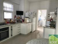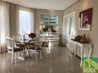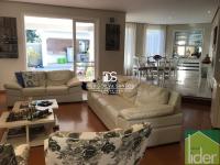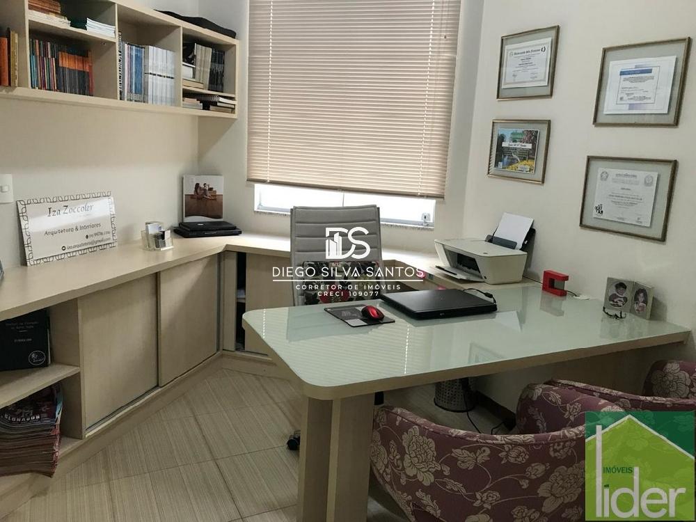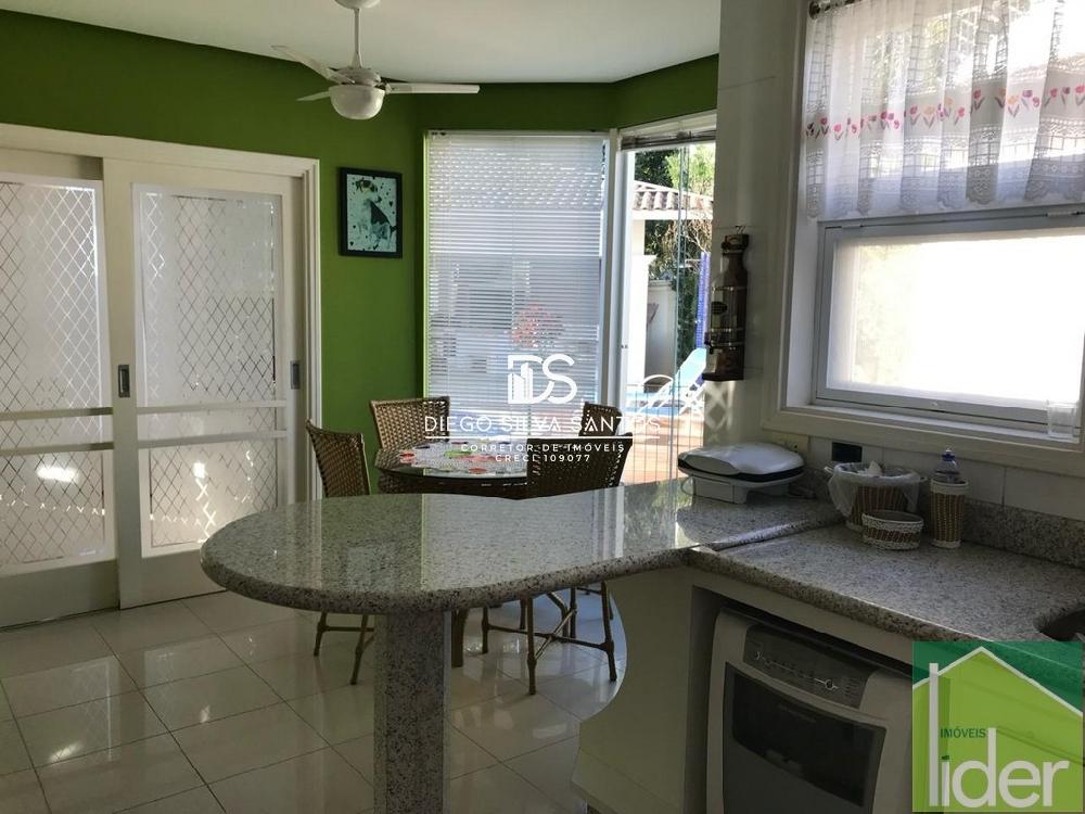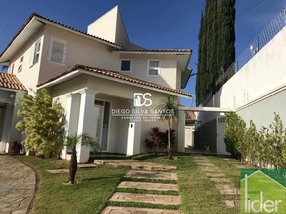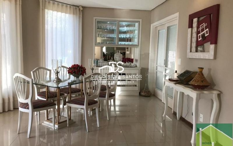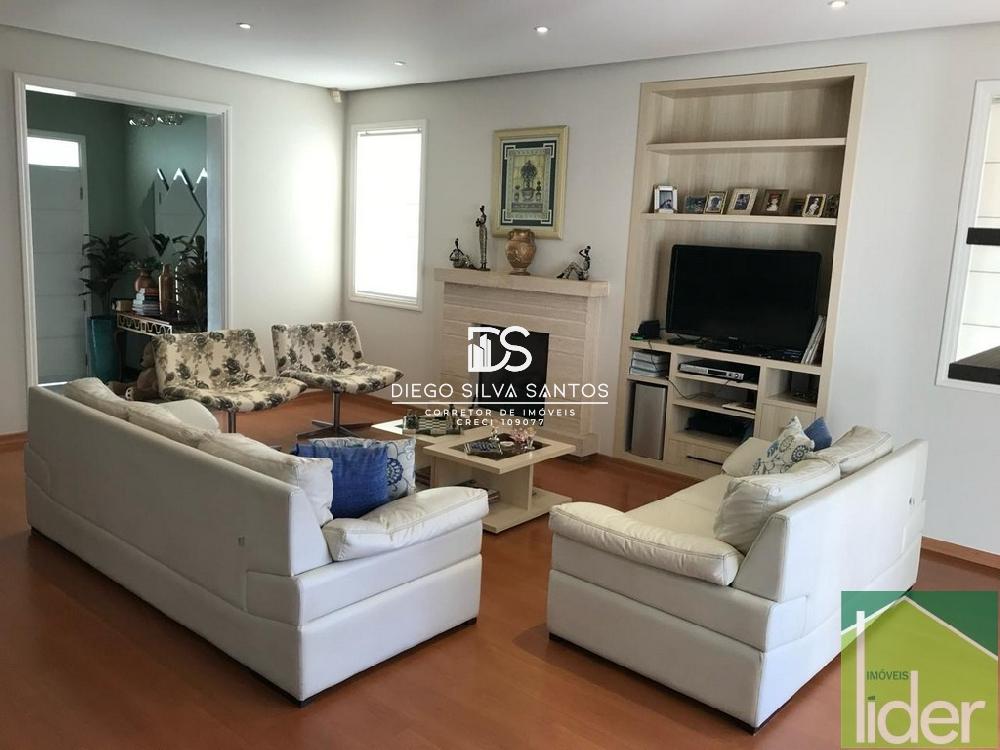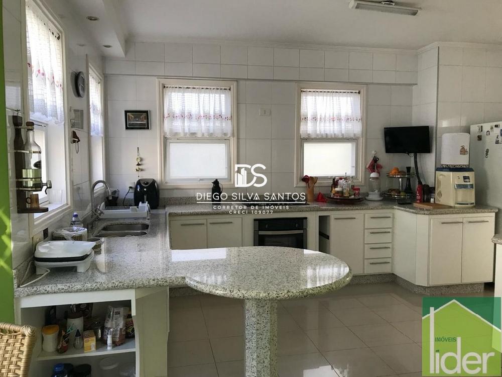 Parte térreo: Hall de entrada, Escritório, Sala ampla com dois ambientes, lareira a gás e varanda, Cozinha grande (bancada em granito branco polar com cooktop), Copa e despensa, Área de serviço.