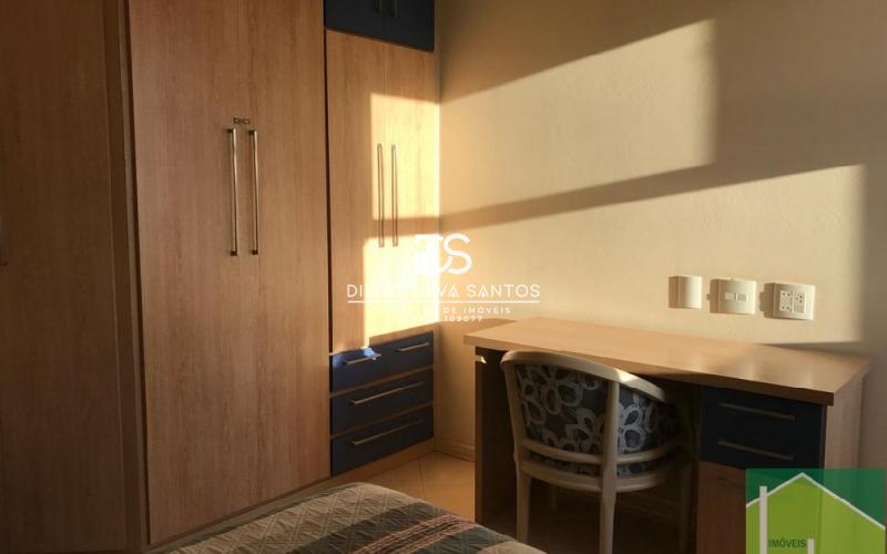 Superior: Suíte com closet e varanda, Sanitário dois ambientes com banheira, Saleta com varanda, Dois dormitórios com armários.