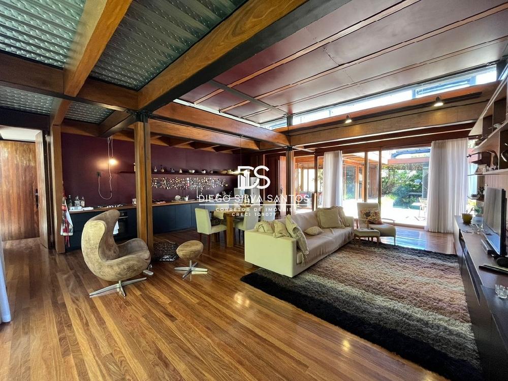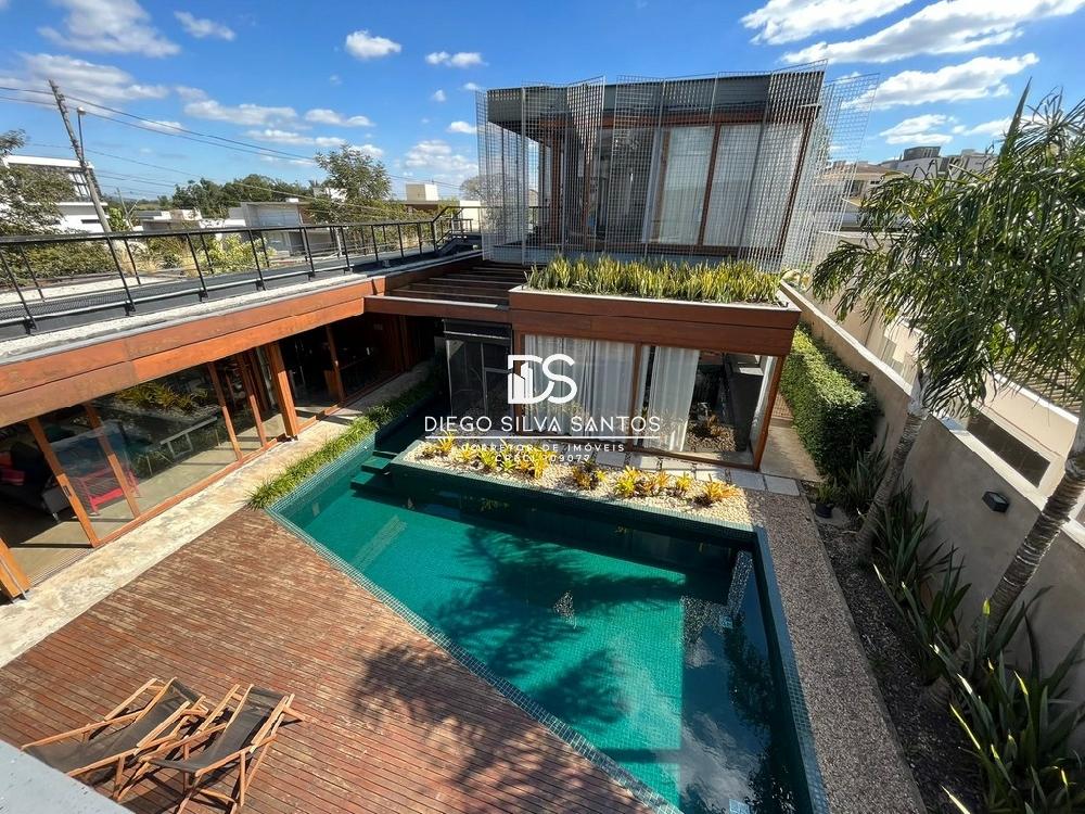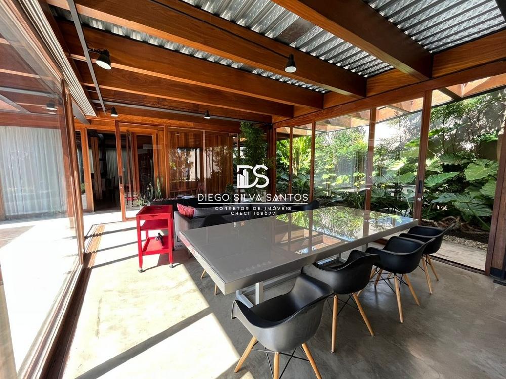 entrada independente. Todos os cômodos possuem ar condicionado instalado. Jardim com lindo paisagismo, muito bem cuidado com diversas plantas. Quintal todo gramado, sistema com gotejamento e aspersor computadorizado. Garagem para 06 autos sendo 02 cobertos, Canil fechado. Casa toda construída com vigas de aço e revestida em madeira cumaru. Esta casa já participou de premiação pela revista casa e Jardim.